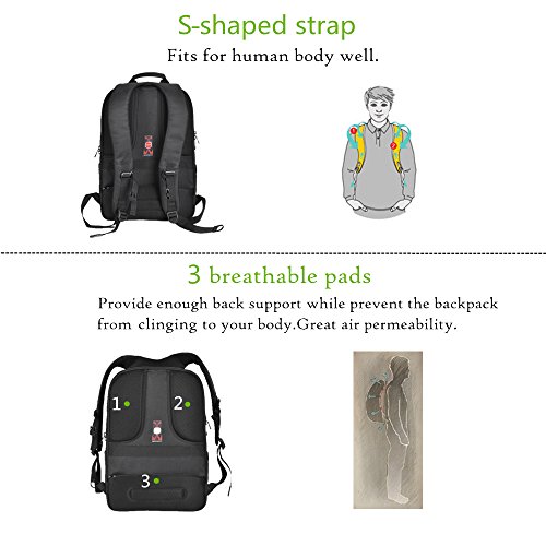 Padded shoulder straps and back padding offer extra back support and comfort. Laptop backpack luggage strap allows backpack to slide over the luggage upright handle tube for easy transport for travelling.