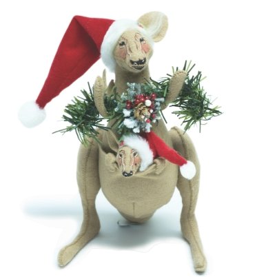 - Kangaroo has pine bough with pine cone and balls and wears a Santa Hat