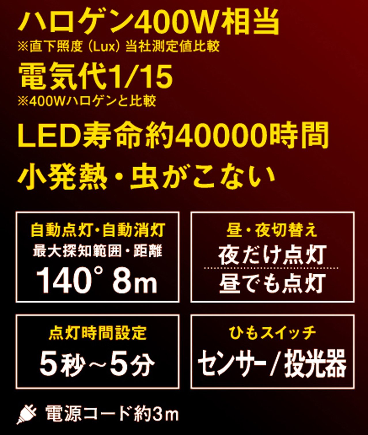 ● Electricity charge about 1/15 ※ compared to 400W halogen