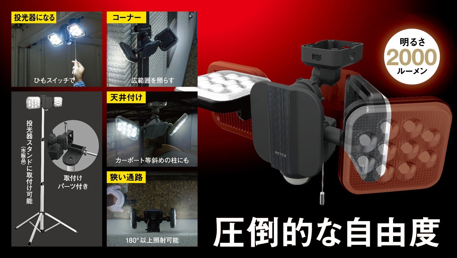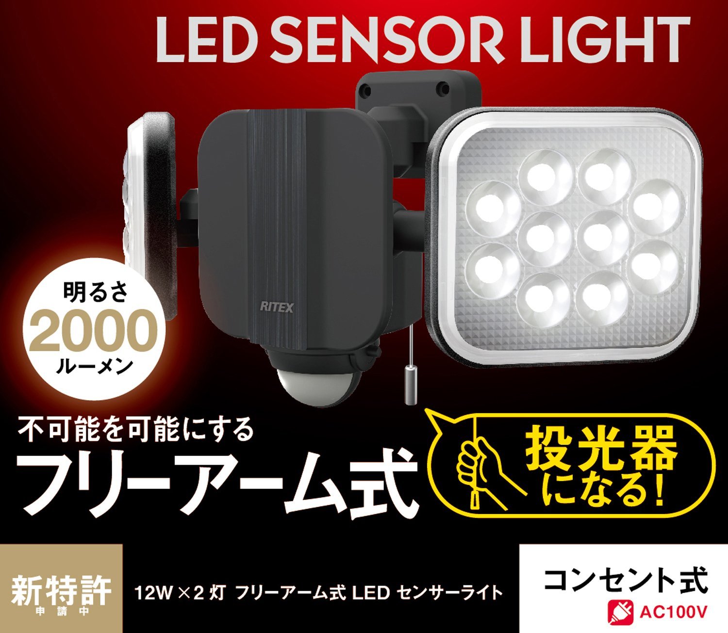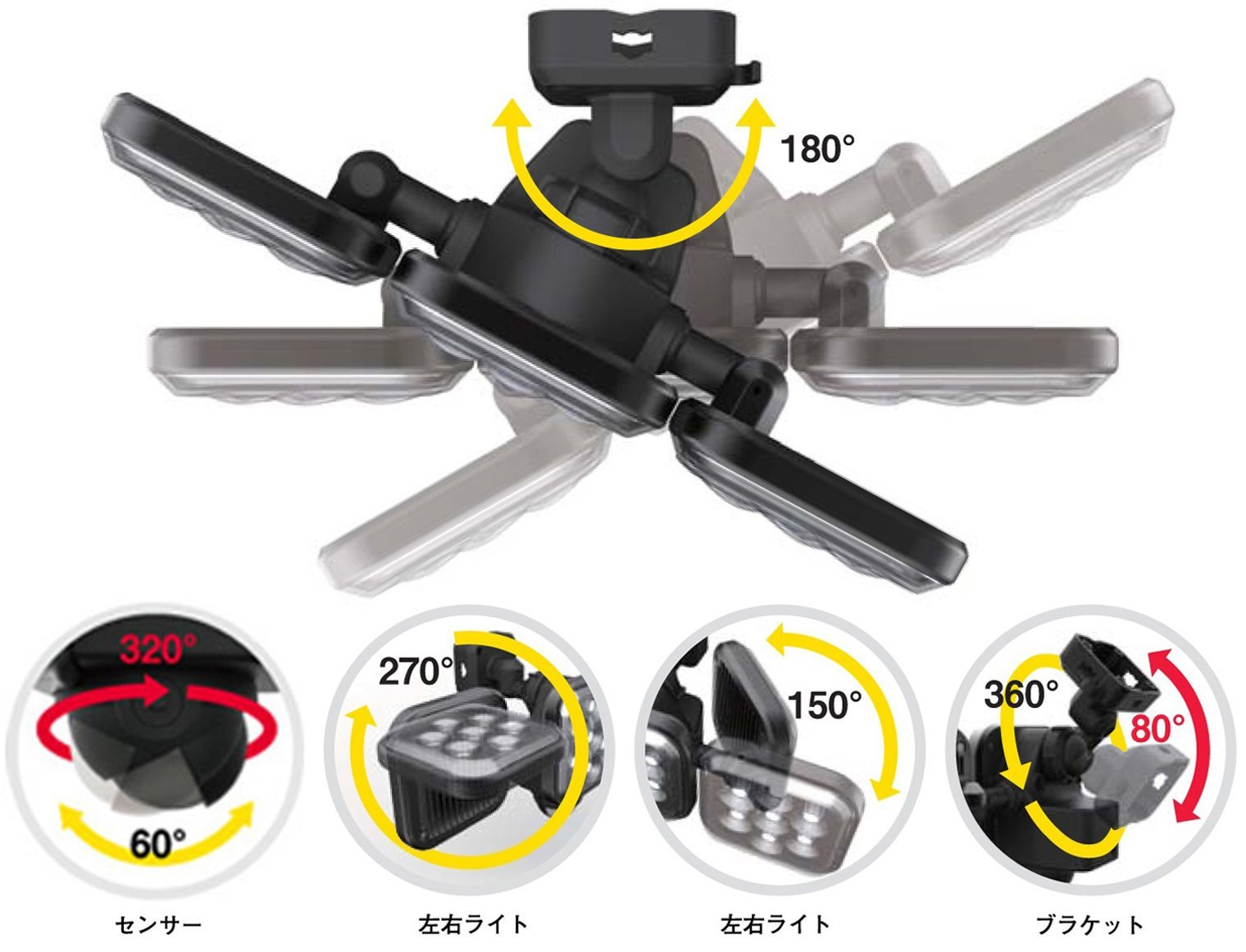 Free Arm Type Sensor Light with New Structure Ideal for Irradiation Direction and Mounting