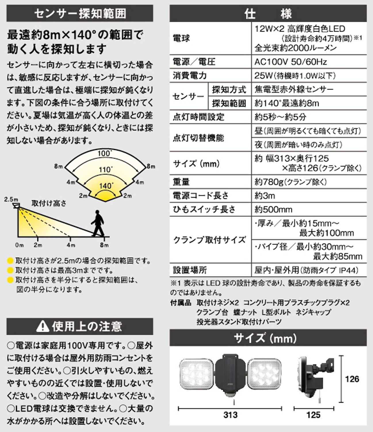 Brightness is about 2000 lumen (equivalent to halogen 400 W) * Direct illuminance (Lux) manufacturer comparison value comparison