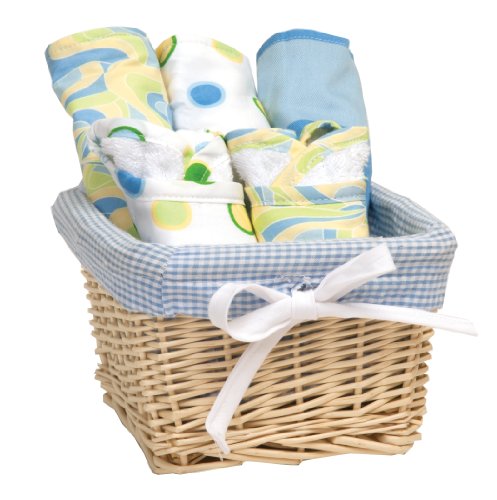 -. Feature : 7 piece gift set includes: 2 bibs, 3 burp cloths, basket, removable liner / Bibs measure 8" x 12" / Burp cloths measure 10" x 13" / Basket measures 6" x 6" x 4" / Bibs and burp cloths are machine washable