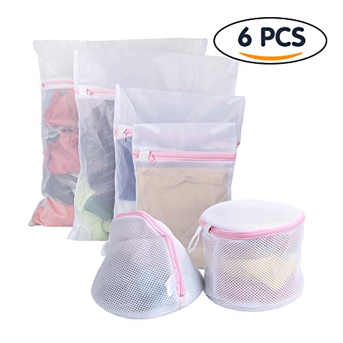Tenn Well 6 Set Laundry Bags, Reusable Mesh Zippered Laundry Bra Bags for Clothes, Underwear, Delicates, Bras, Socks, Baby Clothes (White)