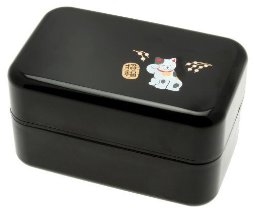 KOTOBUKI 2-TIERED BENTO BOX, MANEKI NEKO LUCKY CAT, BLACK