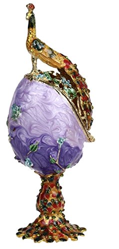 Peacock Crafts Purple Eggs Bejeweled Trinket Enamel Pewter Box 5.5"