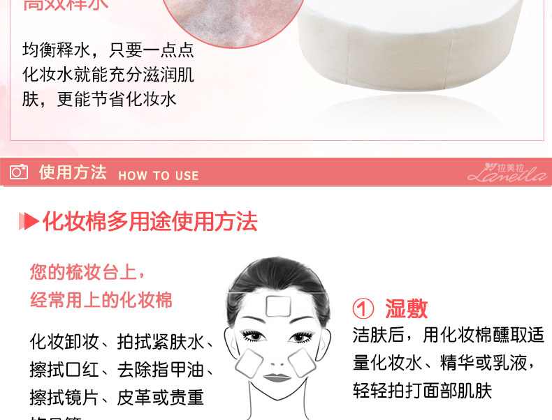 | 使用说明: | 搭配化妆水 以化妆棉沾取适量化妆水,由内而外轻柔地涂擦全脸,可于干燥处稍加停留,使其充分吸收,大部分化妆水是由水份与保湿剂组合而成,不仅可以为肌肤补充角质层的水分和保湿因子,并为后续乳液、乳霜搭配提升吸收效果。 搭配去角质液 早晚清洁后,按压2到3次的去角质液于化妆棉上,待其渗透之后,轻轻自脸中央而外、由下而上擦拭全脸,以小面积的旋转按摩,促进老废角质脱落,鼻翼及下巴等角质较厚处,可以中指指腹加强按摩。 正确擦拭方向 总体的大方向是从脸部中央开始,由下而上的擦拭,这样的方向目的是提升肌肤紧实度,尤其是脖子最容易忽略,可预防下垂情形;美容教主牛尔还提供另一种擦拭方向,因为毛孔开口略往下,因此可先由上而下的擦一次,帮助毛孔关闭,最后再由下而上的擦一次。 | |