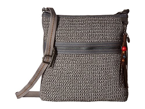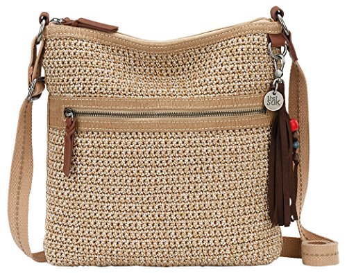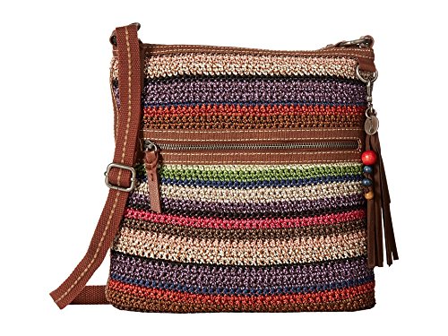 The Sak Lucia Crochet Crossbody features a soft, textured crochet body and colorful beaded tassel keychain. Main zipper closure Back wall zipper pocket Front wall multi pockets Adjustable webbing strap Shoulder guard Front & back exterior zipper pockets Signature logo fringe tassel with multicolored wood beads.Feature