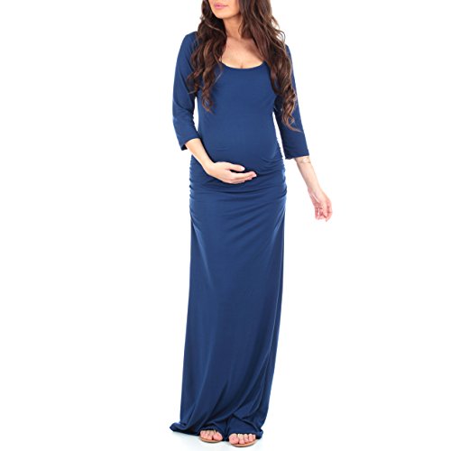 -. Feature : Features 3/4 length sleeves and ruched hips that compliment the sleek bodycon design, along with a superbly soft and stretchable material. / Designed specifically to be simple and trendy, but yet comfortable and complementing through all stages of pregnancy / Sizing Measurements: / Care instructions: Wash gentle cycle cold with like colors/do not bleach and dry low/iron low when needed / Proudly made in the U.S.A