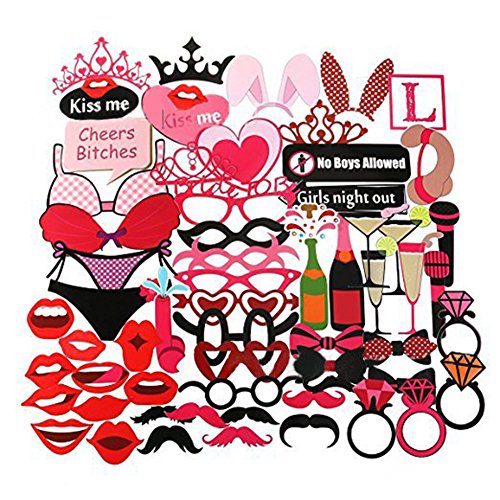61 Pcs,Bachelorette Party Photo Booth Props for Wedding Birthday Party, Party Accessories (red)