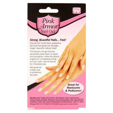 Studio : Pink Armor Publisher : Pink Armor Binding : Misc. Product Description Pink Armor Nail Gel. Pink Armor is the thick, protective gel coat that gives you stronger, longer, beautiful natural nails. The Keratin-rich gel formula penetrates deep down to repair and strengthen, while the optical brightener immediately brings out your nails' natural beauty for a flawless look. Quick easy gel coat. Strengthens protects. Repairs restores. Promotes nail growth. Glossy gel-nail finish. Helps nails grow long strong. Protects against breaking, cracking, splitting and discoloring. Great for manicures pedicures. Repairs and restores Promotes nail growth Glossy gel-nail finish 0