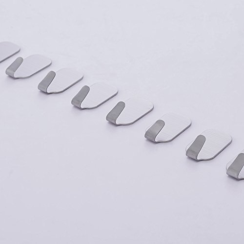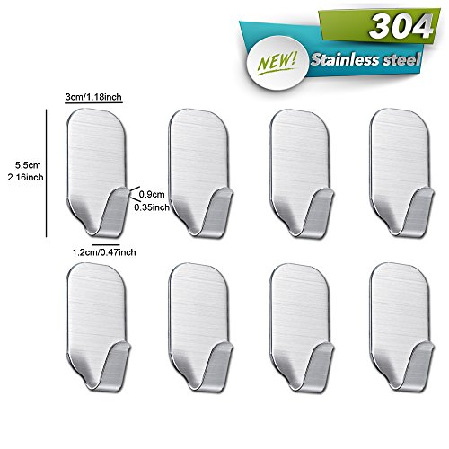 - Material:Made of high quality 304 stainless steel, durable and waterproof,Package include:8pcs self adhesive hook,Size:2.16"(H) * 1.18"(W),Weights near 13.1g.