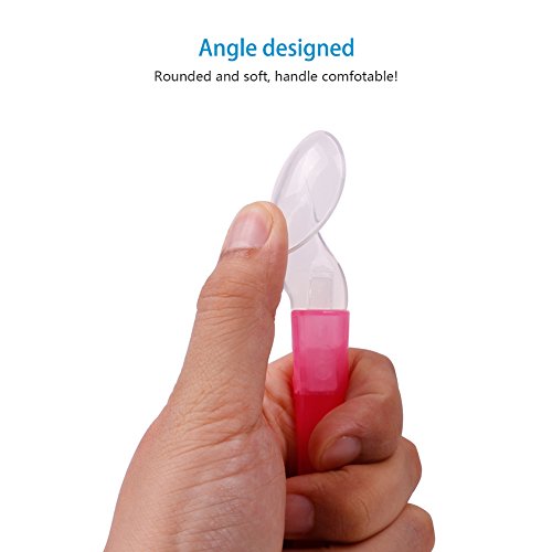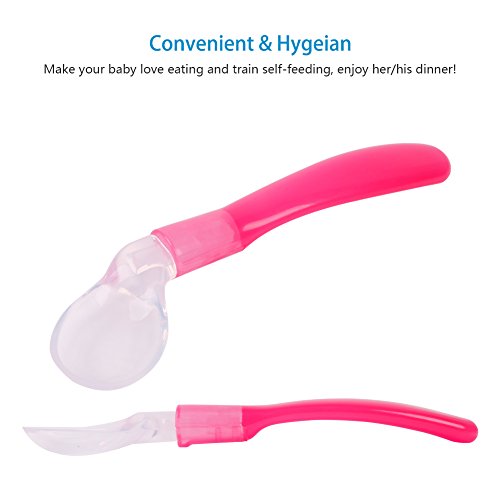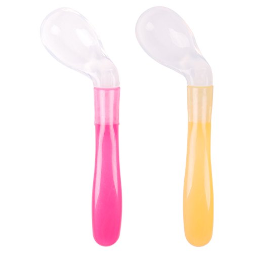-. Feature : Food grade materials-Silicone,100% safe and skin soft for your baby; / Organic Design: Make your baby love eating and train self-feeding, enjoy her/his dinner! / Curved / Angled handles: rounded and soft, handle comfotable! / Dishwasher-safe, BPA-Free! / ATTN: suitable for baby still learning how to eat by himself! The spoon is quite soft so will not hurt baby's mouth, the handle is angled so baby can easily feed himseld!