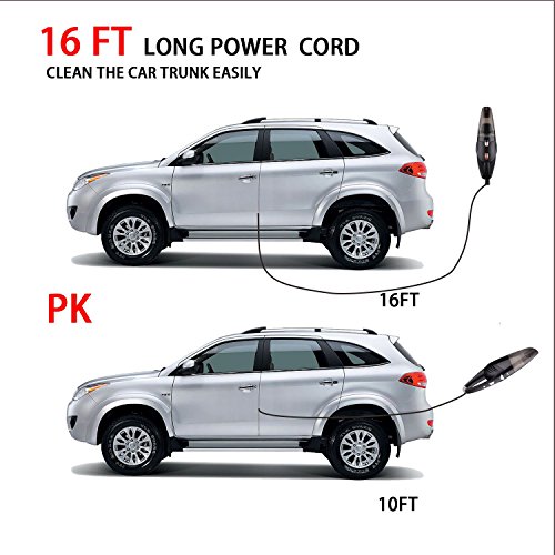 The power cord of this handheld auto vacuum cleanner is 16.4Ft long,it makes you can clean everywhere in your car. Perfect arc of the handle, feel comfortable long grip is not tired. Just insert the cigarette lighter plug into any DC 12V cigarette lighter sockets and control the switch, then it will work. Removable dust box user-friendly design, simple demolition, easy to clean.