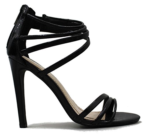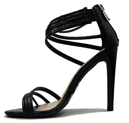 Binding : Apparel Product Description Skinny straps of vegan faux leather are textured with a sexy, snakeskin finish, then stacked into an asymmetrical curved vamp and ankle cuff for a totally dazzling pair of dress sandals! Single sole teams with a wrapped stiletto high heel for a fab finish 0