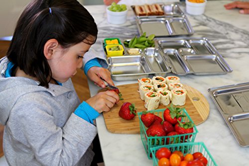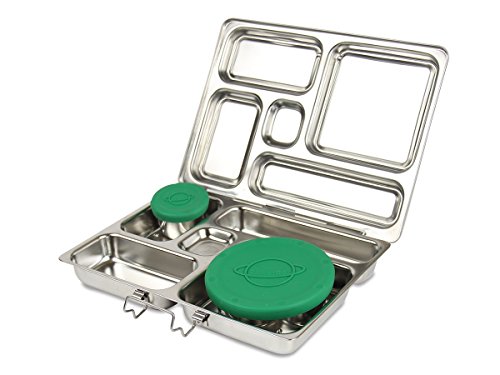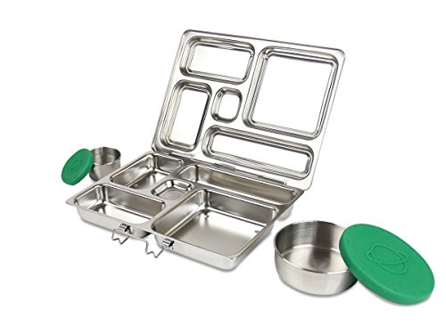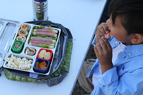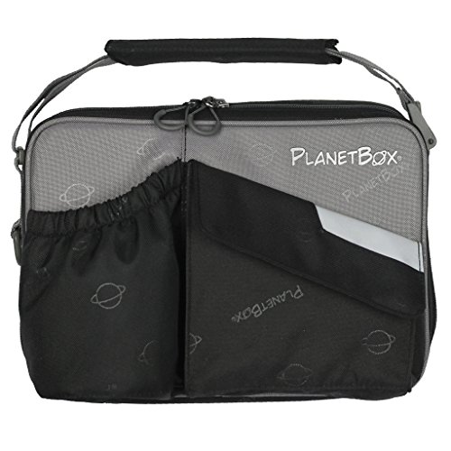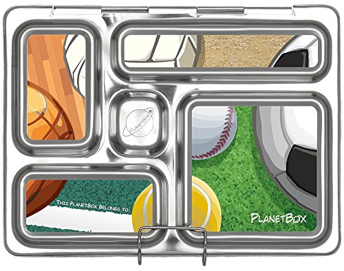 PlanetBox ROVER Eco-Friendly Stainless Steel Bento Lunch Box with 5 Compartments for Adults and Kids - Black Carry Bag with Sports Balls Magnets