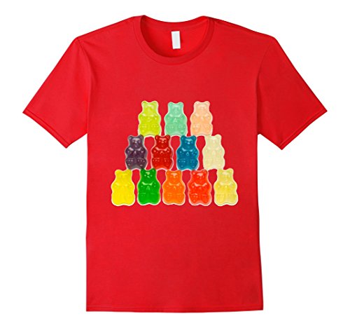 Mens Chewy Bear Shaped Gummy Candy T-Shirt Delicious Fruity Treat Small Red