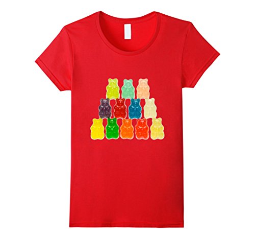 Womens Chewy Bear Shaped Gummy Candy T-Shirt Delicious Fruity Treat Small Red