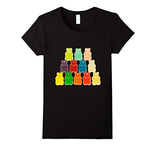 Womens Chewy Bear Shaped Gummy Candy T-Shirt Delicious Fruity Treat Small Black