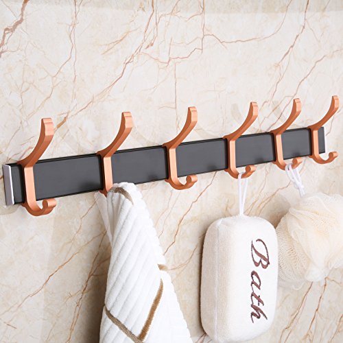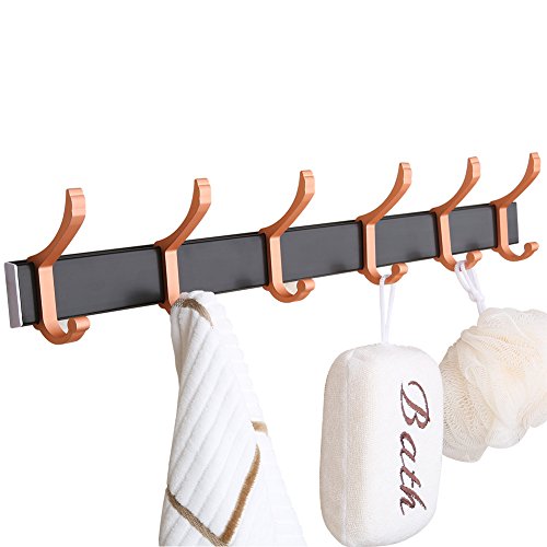 Wall Mounted Coat Rack with Self Adhesive | No Drilling, No Screws Needed | Superjare 6 Dual Hooks Rail | Moveable Hooks | Black/Copper