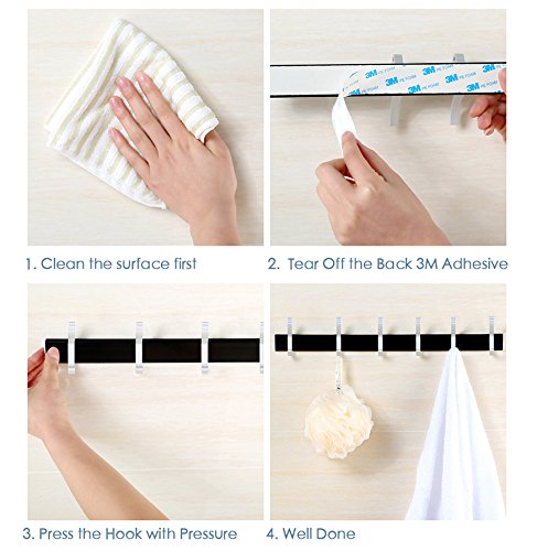 - QUICK ASSEMBLY - No Holes, No Nails, No Drilling needed. Just tear off the protective film on the back. With Super Strength Adhesive can the Hook Rack last long