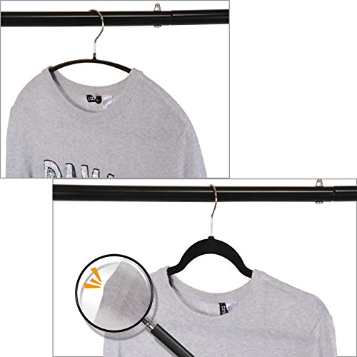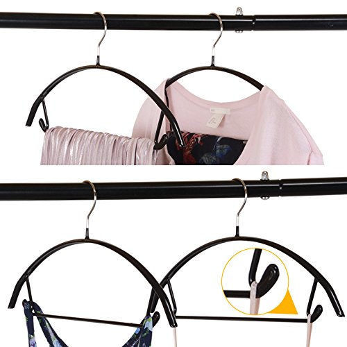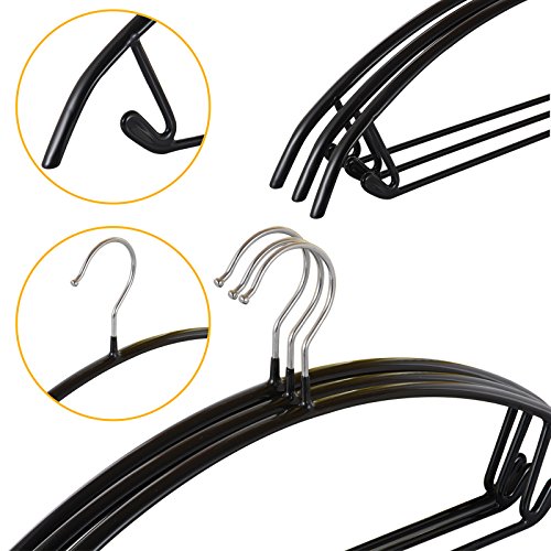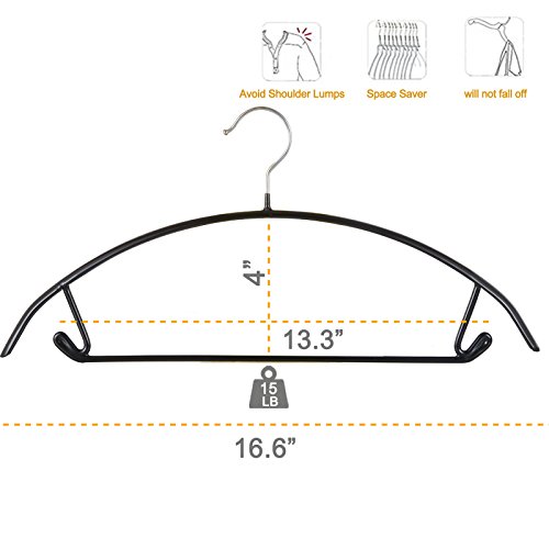 -. Feature : [Anti Shoulder Bumps Design]: this clothes hanger is of a semi-arc shape that can prevent unsightly hanger marks! Specially good for knitwear and soft frebic garments, such as chiffon,silk,etc. / [Non-slip, Dry Wet Amphibious]:trouble free handling most types of garments, such as jeans and wet knit shirts, no sagging! / [Made Durable and Heavy Duty to hold up to 15LB]:these clothes hangers are made of high manganese steel hangers with PVC resin coating, easy-to-clean, long-lasting and durable combinations, it helps you out in any circumstances. / [Hooks and Bar] for better handling pants and clothes with shoulder straps: the accessory bar, and windproof notched shoulders hooks allow you to hang more than one garment per hanger! / [16.6" x 4" standard size] for adult clothes, space saving up to 50%!