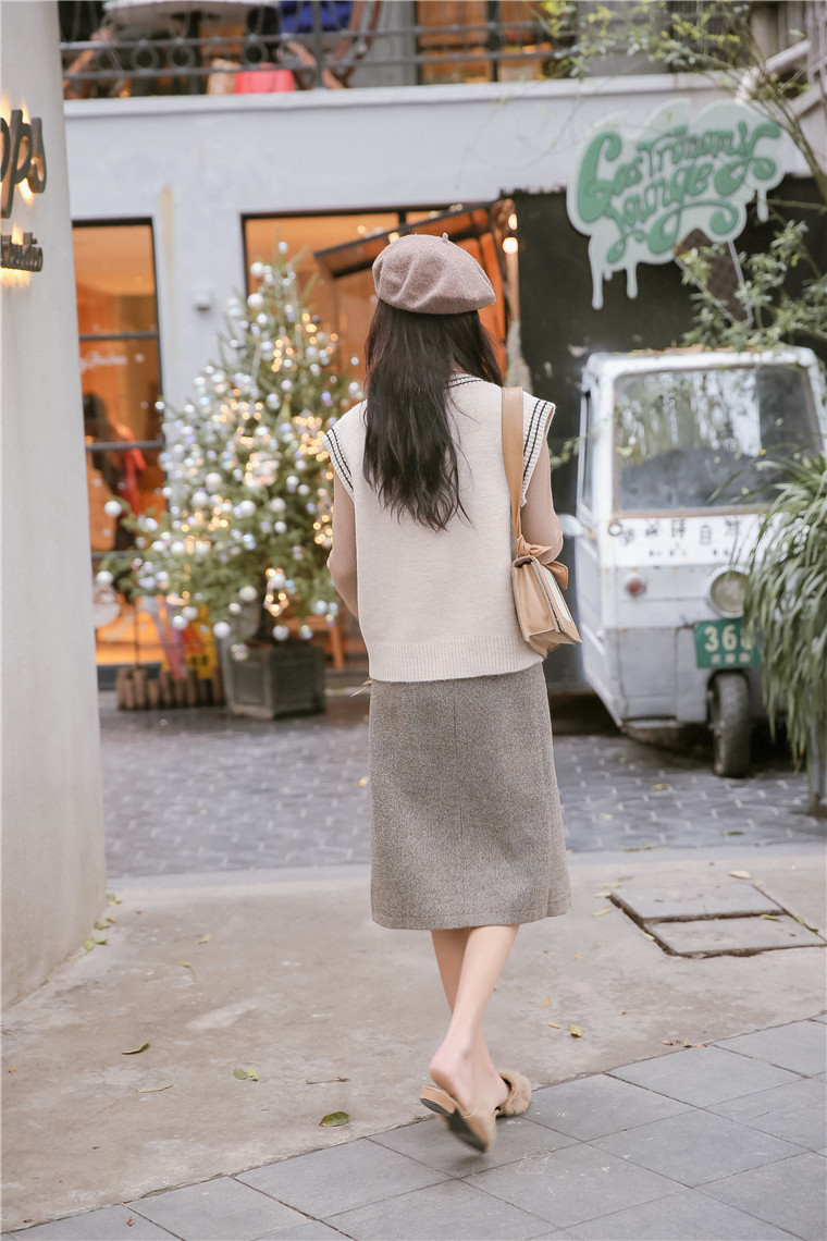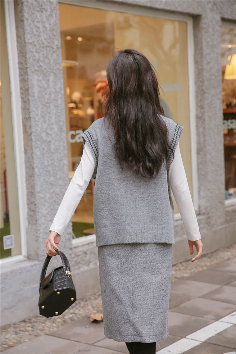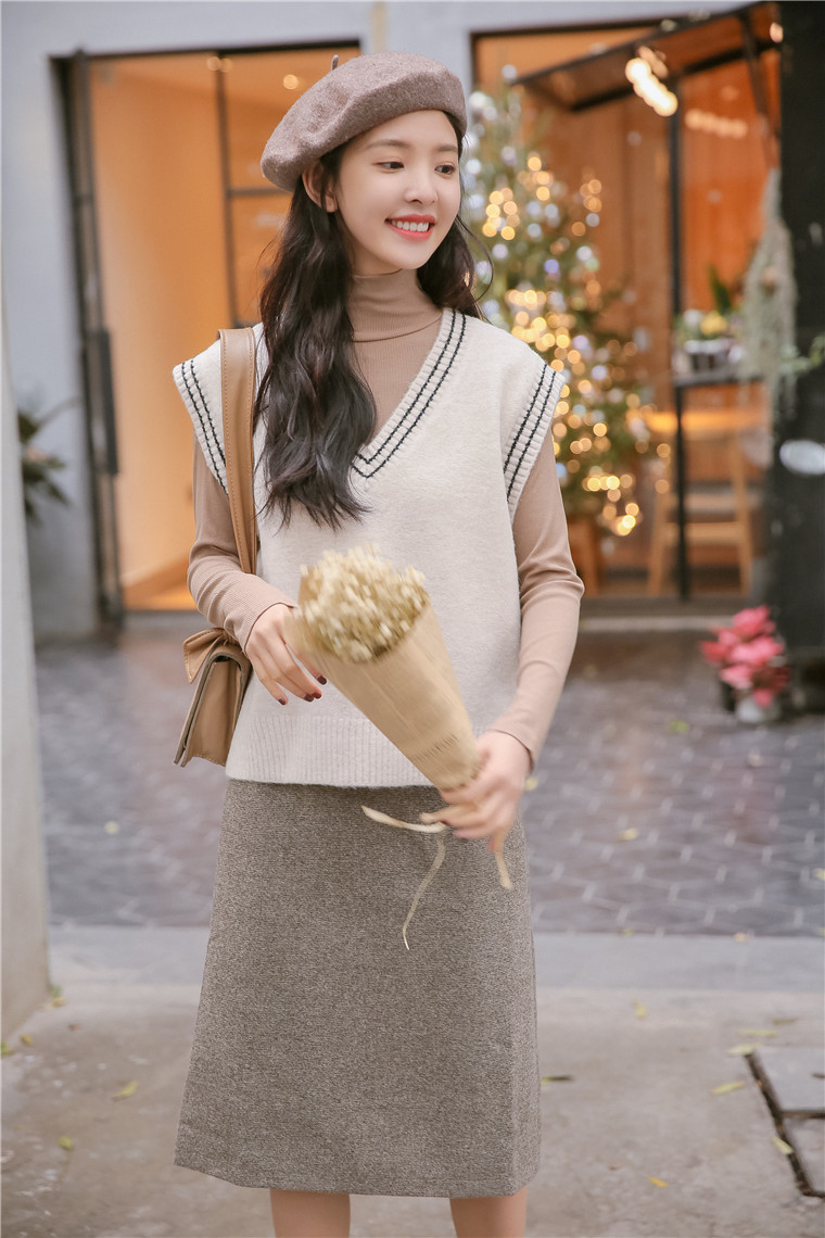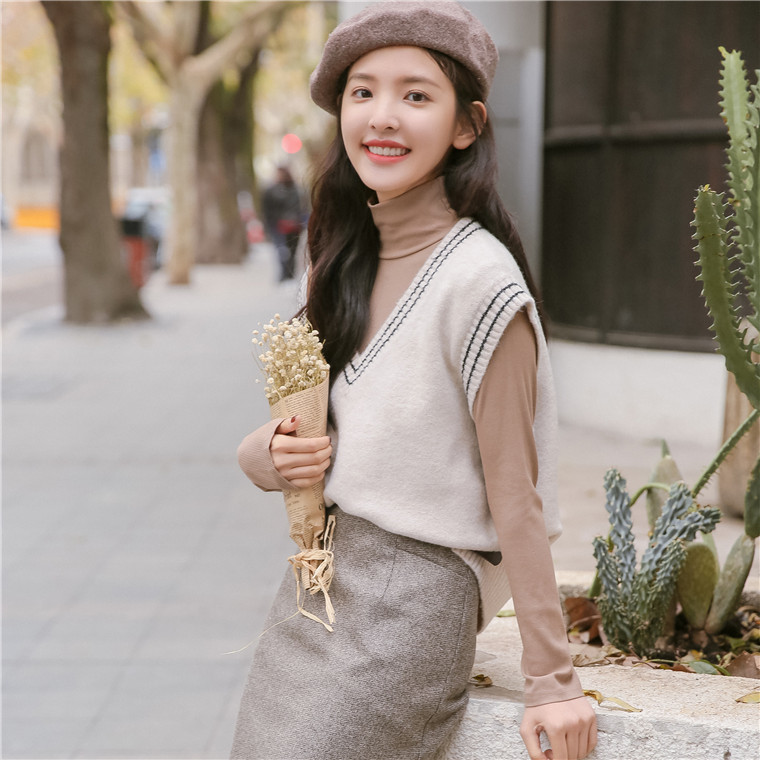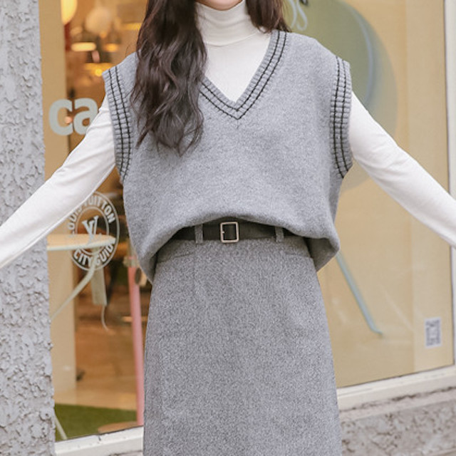 カジュアルながらも落ち着いたカラーが大人っぽい印象のVネックニットベストです。