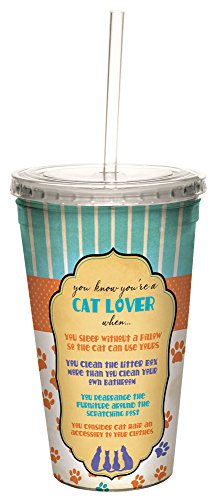 Tree-Free Greetings 98175 Angi and Silas Cat Lover Double-Walled Cool Cup with Reusable Straw, 16-Ounce