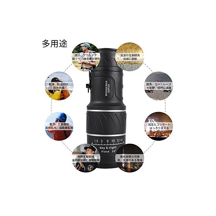 【고배율,방진】40X60 이 단안경은 BAK4프리즘에 만들어지고, 렌즈는 더욱 좋은 밝습니다.대상물이 선명하게 보이고, 샤프인 상이 얻을 수 있습니다.접안와 접물건에는 방진 커버가 있기 때문에,잘 방진 합니다.