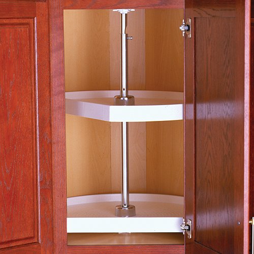 -. Feature : Individual shelf rotation featuring steel bearing pins and zinc plated 1 inch diameter telescoping post. / D shaped shelves with a 22 inch diameter. / D shaped design ideal for both corner and rectangular cabinets. / Post height adjustable for spaces 26 15/16 inch to 32 5/16 inch tall. / Shelves feature white polymer construction.