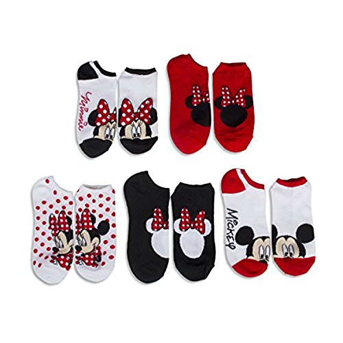 Disney Minnie Mouse Dot Couture Ladies and Juniors 5 Pk No Show Socks Fits Ladies and Juniors sock size 9-11 Fits Ladies and Juniors shoe size 4-10