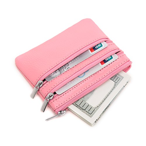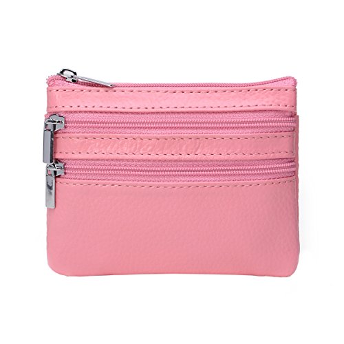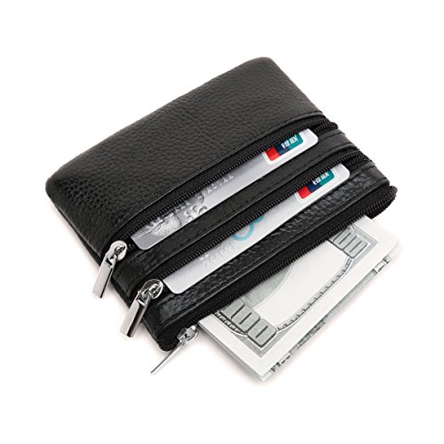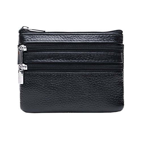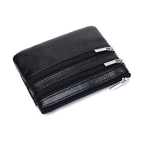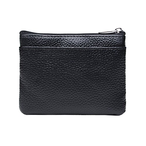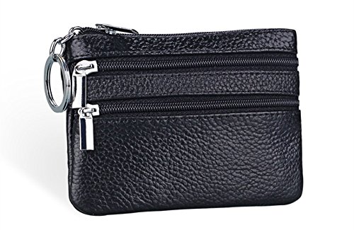 | Genuine Leather Coin Mini Purse Wallet With Key Ring Chain for Women and Men(black) |