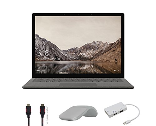 -. Feature : A NEW GENERATION OF CPU: Features Intel's 7th generation of processors for unprecedented power and responsiveness. / NEW 2017 WINDOWS 10 S: Streamlined for security and superior performance. Best Windows ever for schools and can easliy switch to windows 10 Pro for free until Dec 31,2017 / UP TO 14.5 HOURS OF BATTERY LIFE: for all day power on the go / SLEEK, ELEGANT DESIGN, ULTRA-THIN AND LIGHT: It fits easily in your bag, Luxurious Alcantara fabric-covered keyboard / Bundle includes: Surface Laptop,Surface Arc Mouse Light Gray, Mini DisplayPort Adaptor and HDMI Cable
