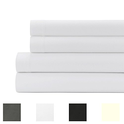 400 Thread Count 100% Egyptian Cotton 15 Inches Deep Pocket Sheet Set, White Solid Queen Sheets 4 Piece Set