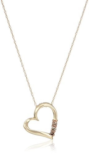 -. Feature : Lustrous 10k gold necklace featuring angled heart pendant set with trio of diamond rounds / Rope chain with sP.R.Ing-ring clasp / All our diamond suppliers confirm that they comply with the Kimberley Process to ensure that their diamonds are conflict free. / Imported