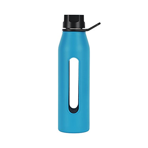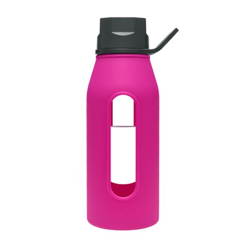 This Takeya Classic Water Bottle features a high quality glass bottle with a wide mouth, and is encapsulated by a silicone jacket that provides a nice grip, as well as protection for the bottle. The sleeve has a see-through window for checking the liquid level. The twist-off cap is airtight and includes an easy carry loop. This H2O bottle provides healthier way to drink, and eliminates metallic or plastic tastes, and leaching from toxic plastics. This bottle holds 22-1/2 ounces, is dishwasher safe, and is available in several colors.