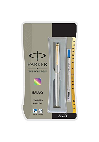 -. Title : Parker Galaxy Stainless Steel Gold Trim Ball Pen