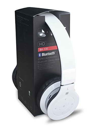 Alpha Digital BH-530-W Bluetooth Headphone with Soft Fit Ear Covers, Built-In Microphone, White