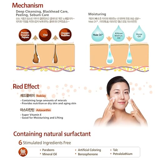 Main ingredients : MOIST24™ / African walnut oil / Hours oil / papain protein enzyme / Red Clay / Astaxanthin