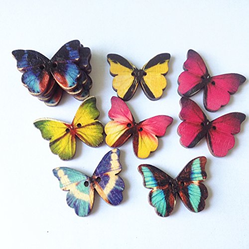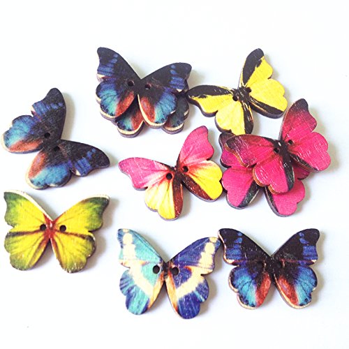 Cutedream 50pcs Mixed Wooden Buttons in Bulk Painting Buttons for Crafts Button Buttons Painting Butterfly Bu-178