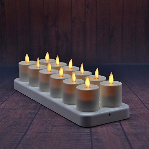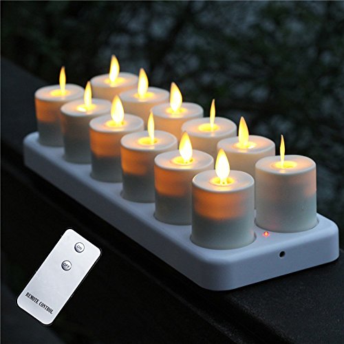 Rechargeable LED Tealight Votives Candles with Moving Flame Wick and Remote Control Set of 12 …
