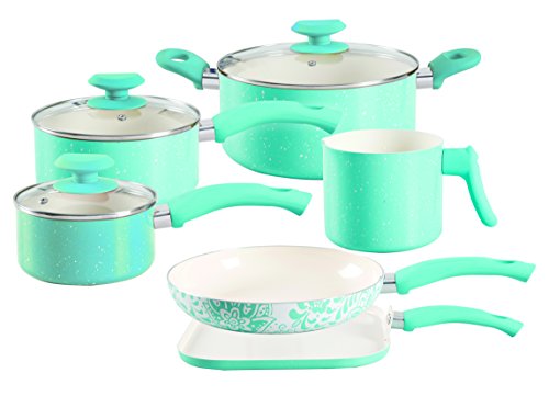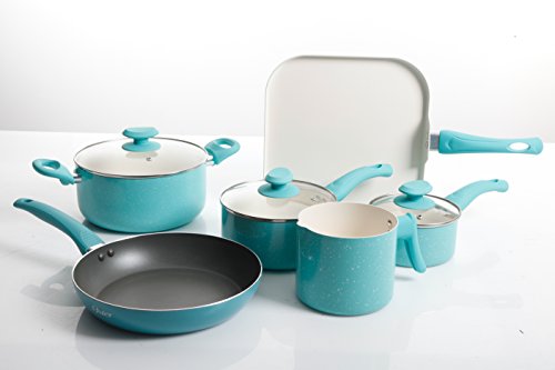 Oster Cocina San Jacinto 9 Piece Non-Stick Cookware Set, Turquoise Speckle