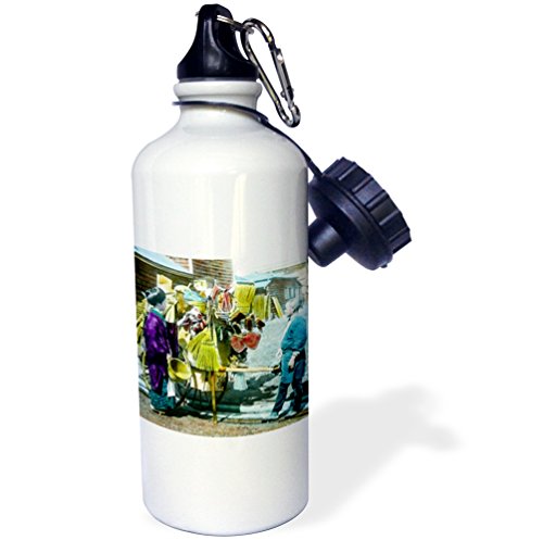 -. Title : 3dRose Scenes from the Past Magic Lantern Slides - Vintage Japanese Lady Buying Broom from Brush Merchant Hand Colored - 21 oz Sports Water Bottle (wb_246498_1)