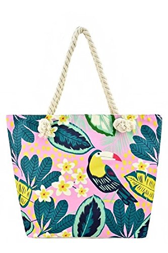 Pink Tropical Toucan Print Vegan Shoulder Tote Bag Purse