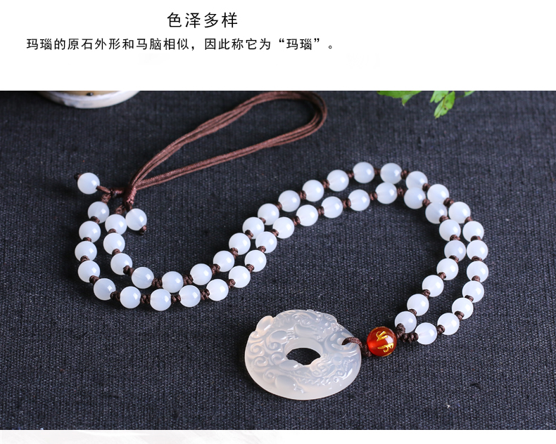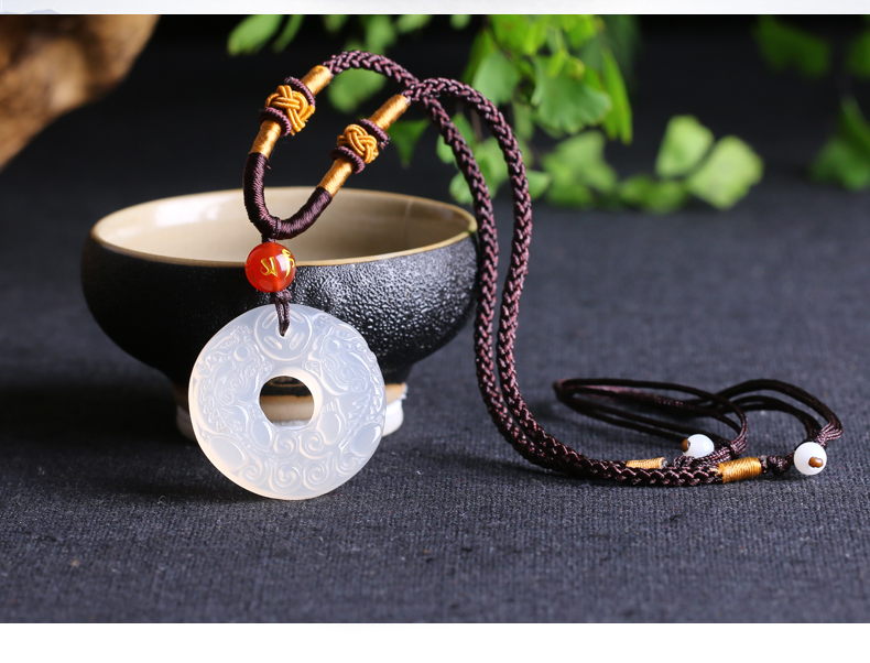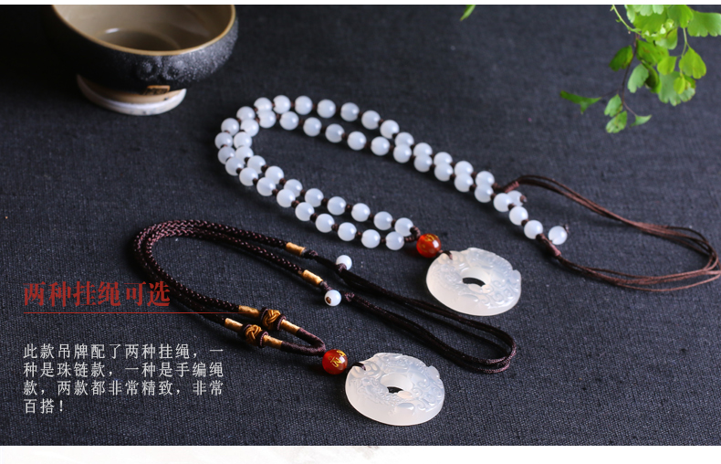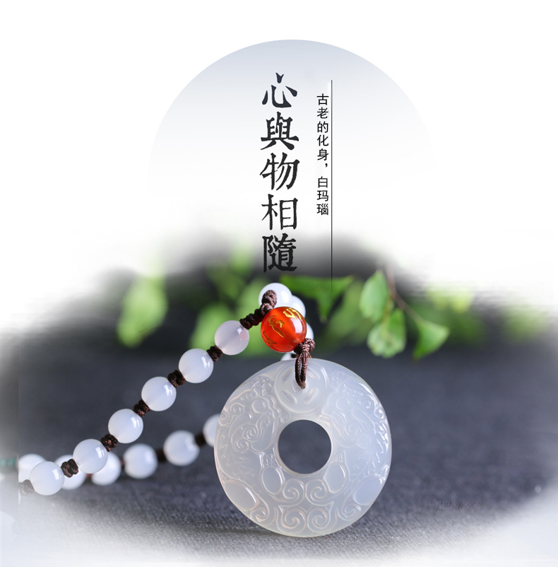 天然冰种白玛瑙玉髓双貔貅平安扣吊坠开光转运圈招财转运男女款
