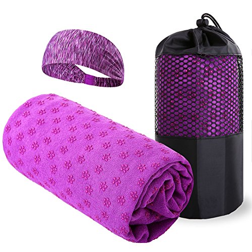 Zuozee Hot Yoga Towel Non Slip,Sport Towel Absorbent,Travel Towel Microfiber,Goyoga Yoga Mat Cover for Workout Exercise Fitness Pilates Picnic Leisure,Free Headband & Mesh Bag Included,(73" x 24.8")