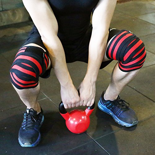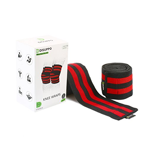 Knee Wraps for Squats, Cross Training WODs, Powerlifting, Weightlifting, Gym Workout & Fitness, Men & Women, (1Pair) Compression Elastic Support, Adjustable Knee Brace, 72" by DISUPPO