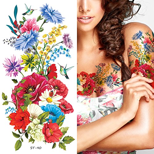 Supperb Temporary Tattoos - Hand drawn Colorful Summer Flower Bouquet (Set of 2)