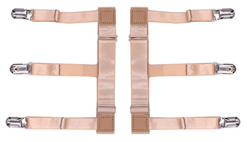 Daffnis shirt stays use strong nylon/polyester,spandex and non-slip locking clamps to keep your shirts tucked in all day long. We use a leather hold to clasp the set together to reinforce the durability of the garter.