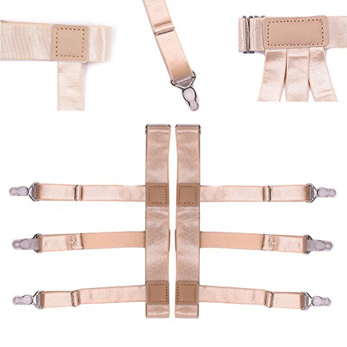 More Details: Metal clamps and each garter comes with 3 buckles, help to hold your shirt firmly and keep straight With gels inside the garter,effectively for anti-slip and shirt friendly