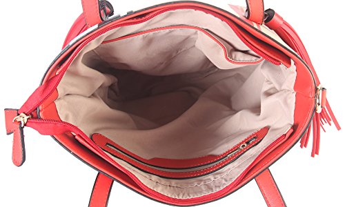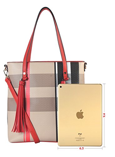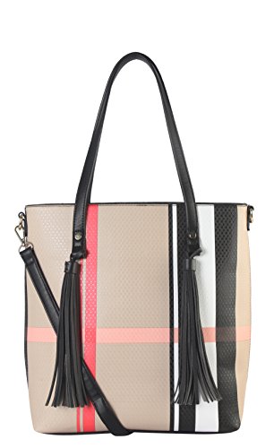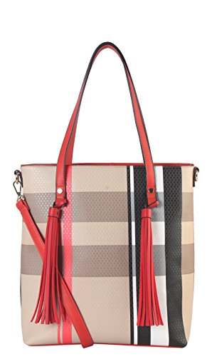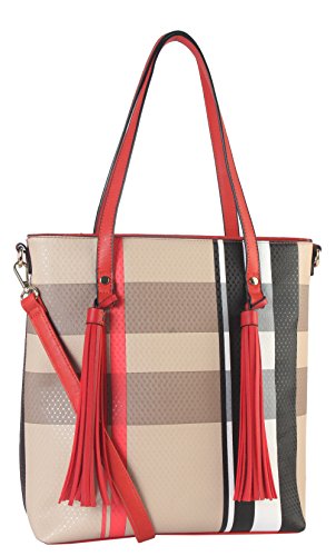 -. Brand : Diophy -. Color : Black -. Department : womens -. Feature : This handbag comes in 3 different colors: Black, Red, and Taupe. / High Quality PU Leather Large Plaid Pattern Front Double Tassels Shopping Tote Bag with removable strap. / High Quality Fabric Lined Interior with Multiple Interior Pockets. 1 Main Compartment with 1 Zippered Pocket and 2 Open Pockets Inside. 1 Zippered Pocket Outside in the Back. / Approximate Size info: Length 11.2" x Width 5" x Height 13" Material: PU Faux Leather. Top Zipper Closure. / Color showing in other color is to show the different variation angles of the handbag. The actual bag ship, will be the one your purchased. -. Model : FGZ-6275 Parent -. PackageQuantity : 1 -. ProductGroup : Shoes -. ProductTypeName : HANDBAG -. Title : Diophy PU Leather Large Plaid Pattern Front Double Tassels Shopping Tote Bag